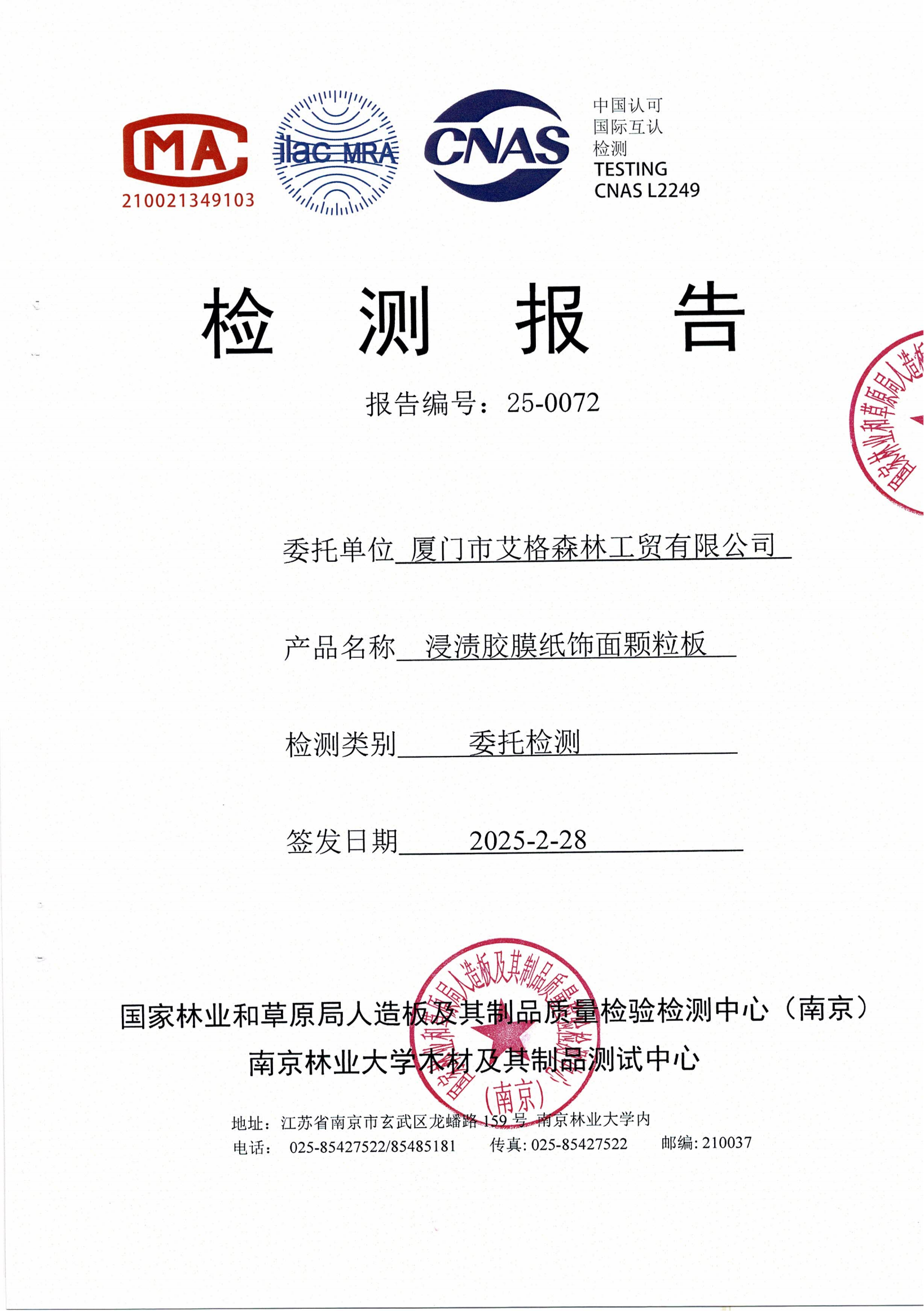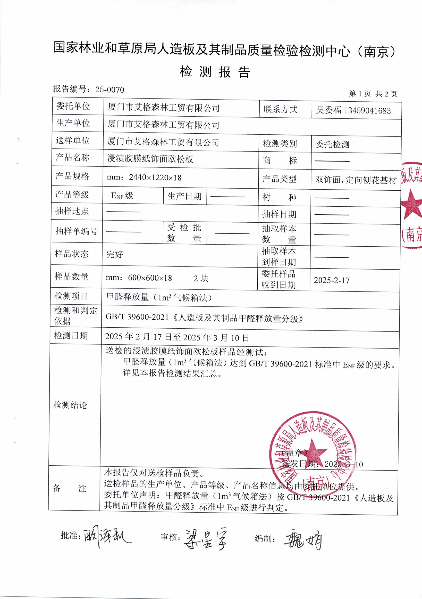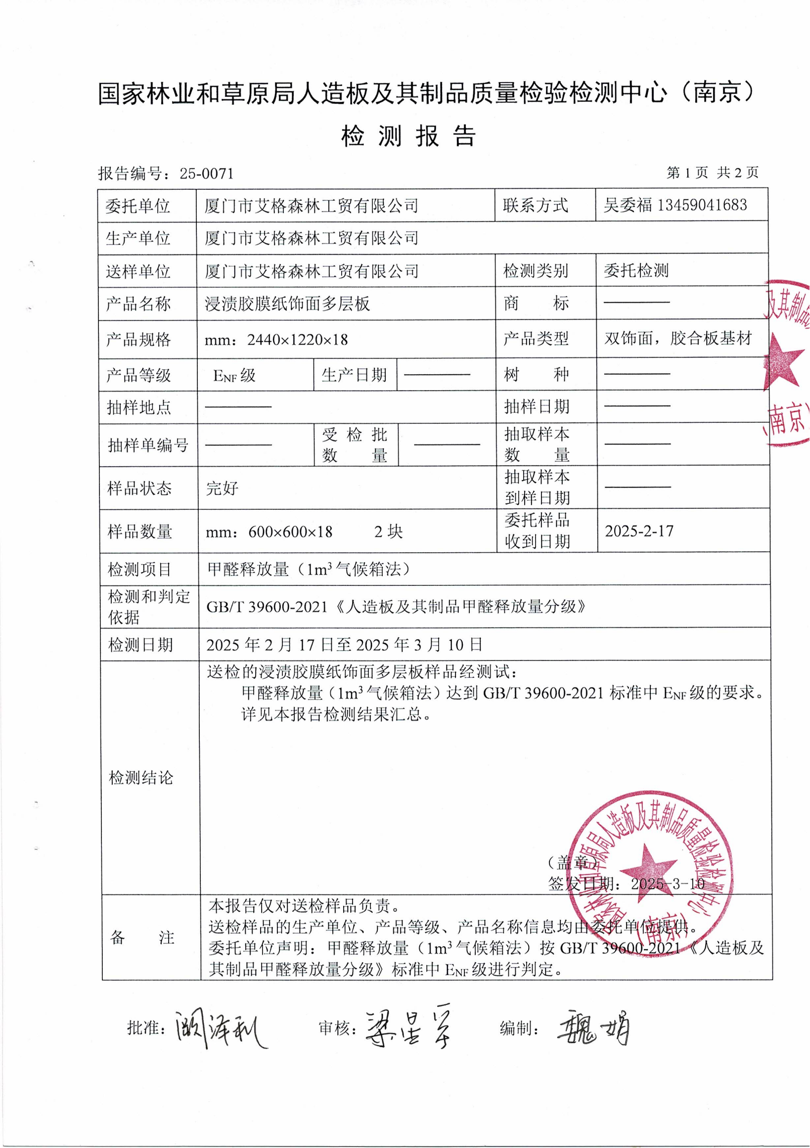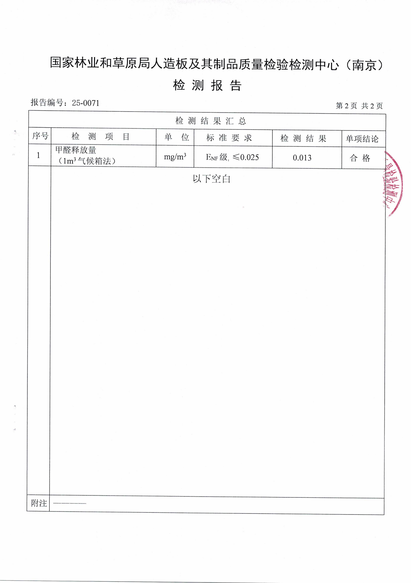 實木多層板ENF級檢測報告